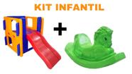 KIT INFANTIL Play Junior Escorregador Infantil Modelo Casinha Premium-Para Meninos e Meninas + 1 gangorra cavalinho verm