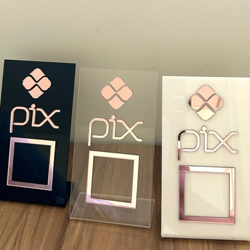 Placa Pix Pagamento QrCode De Mesa Balcão Loja Consultório Plaquinha Com Base Em Acrílico