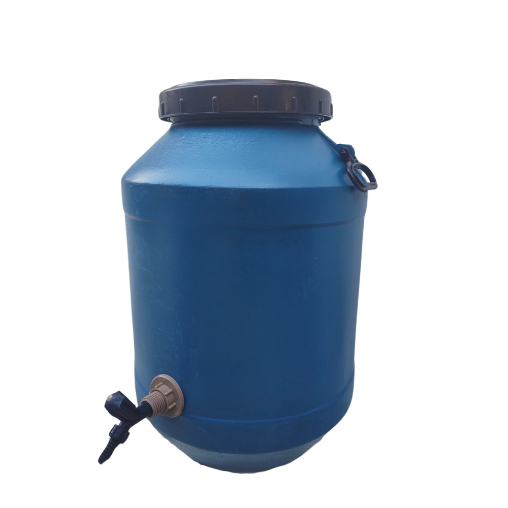 Bombona Torneira Tambor Baril Tonel Galão 50 litros Reservatório com Tampa Água Óleo Ração Alimentos + balde de 5 litros.