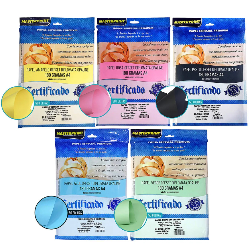 Papel Offset Color Plus Diplomata 180G Colorido (Massa Colorida) Com 50 Folhas