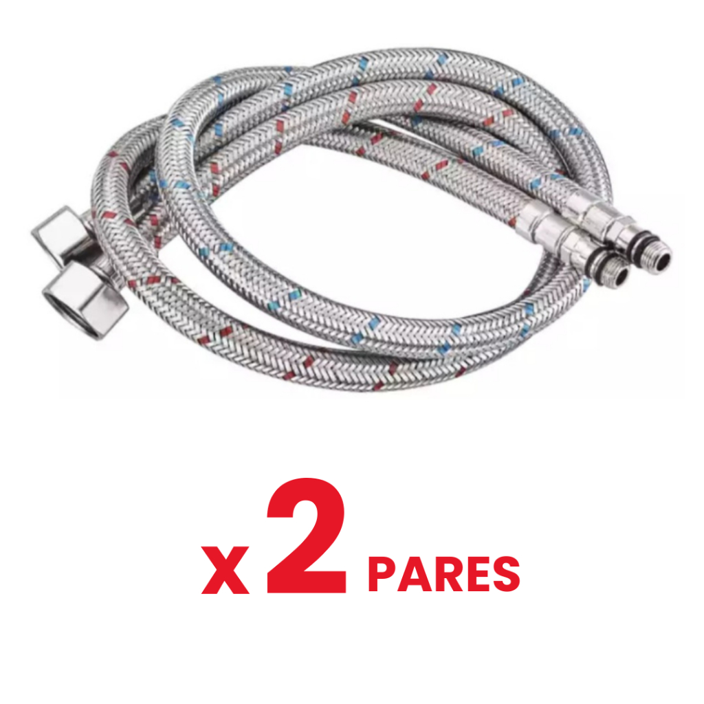 Engate Flexivel - 60 cm - Rabicho Mangueira Aço Inox Misturador Quente E Fria - KIT 2 PARES