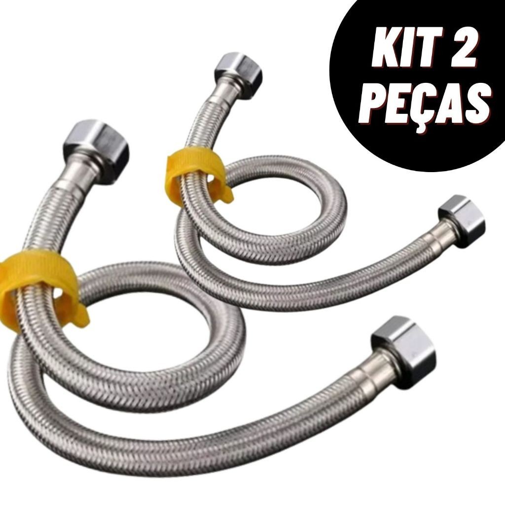 Kit Engate Rabicho Flexível Mangueira Aço Inox 60cm 1/2 Polegada Fêmea x Fêmea Banheiro Torneira Pia