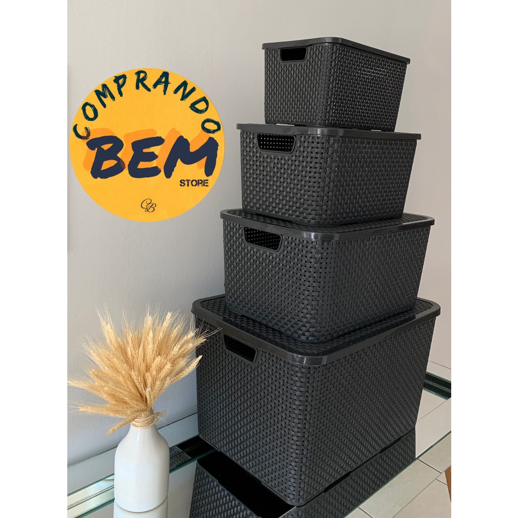 Kit 4 Caixas Organizadoras 7 /15 /20 /40 Litros Rattan Pretas Arqplast