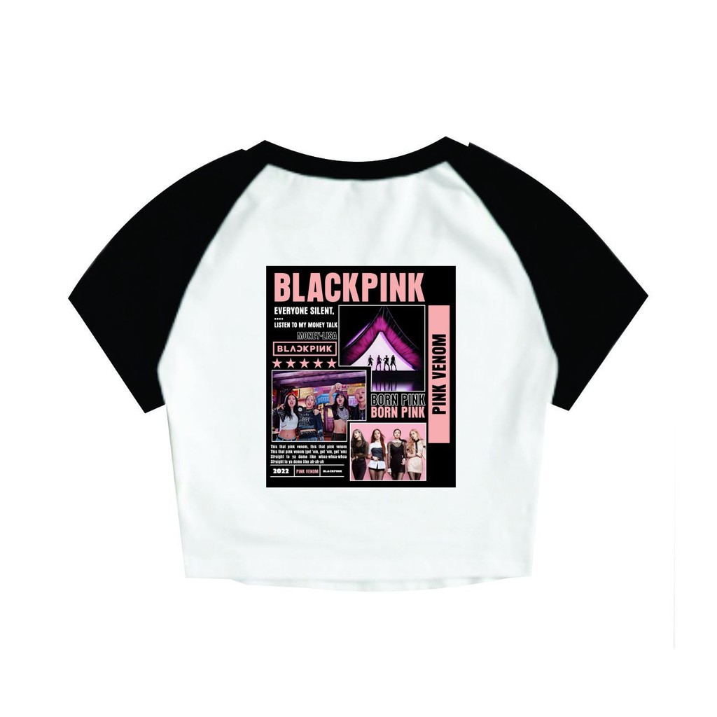 Cropped Raglan Feminino Tumblr blogueira Blackpink Born Pink Kpop Blackpop feminina curta