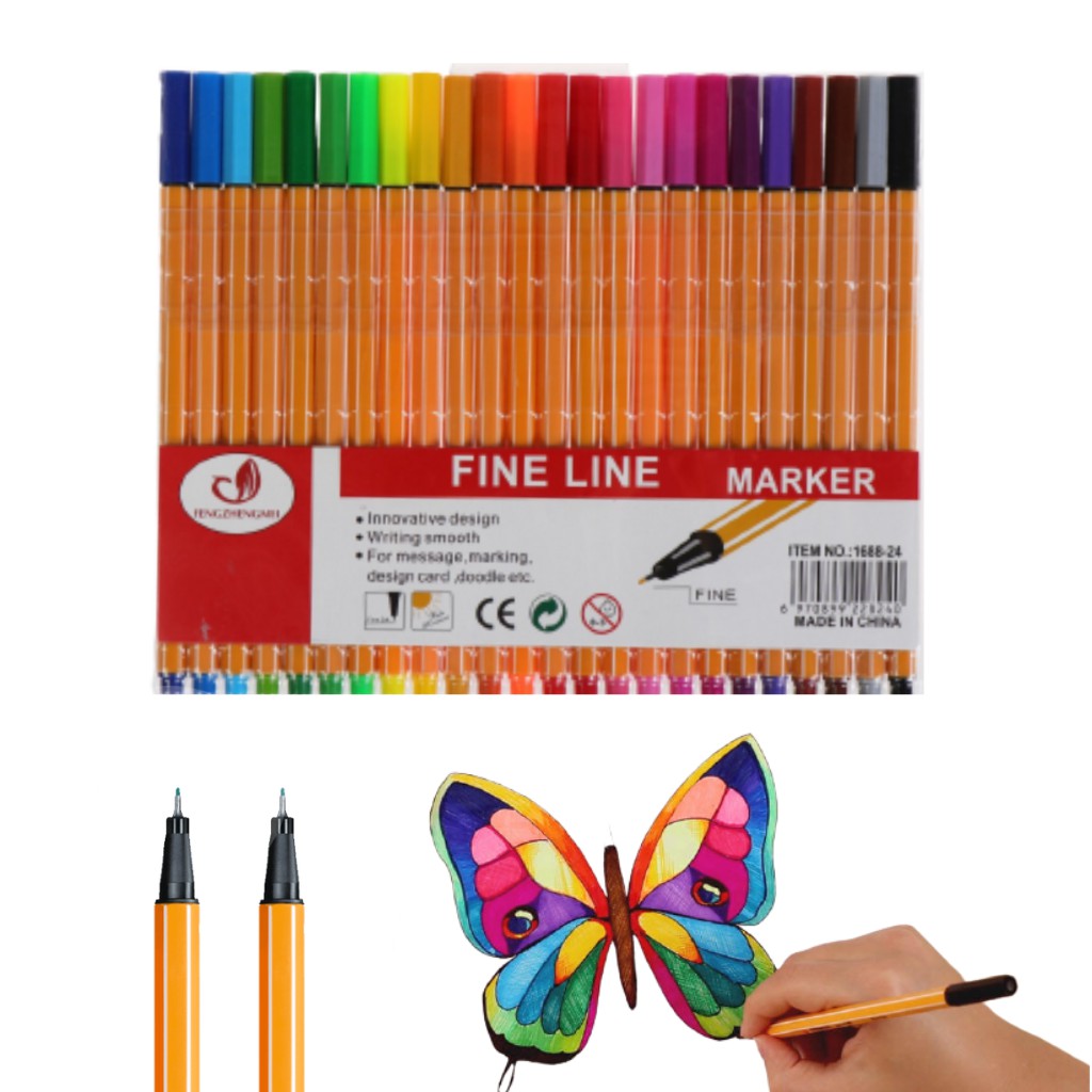 kit 24 Canetas Coloridas Fine Line Ponta Fina 0.4 mm Original