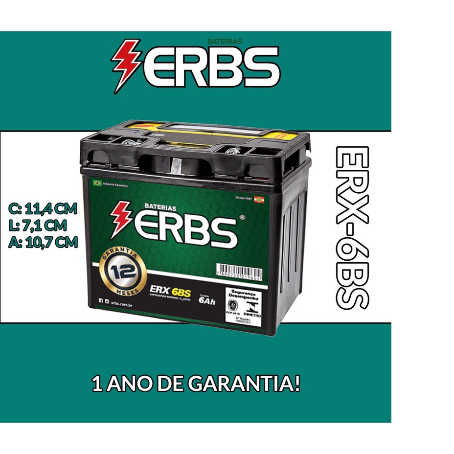 BATERIA 6Ah MOTO TITAN 150 MIX ES/ESD 2009 A 2011 ERX6BS.