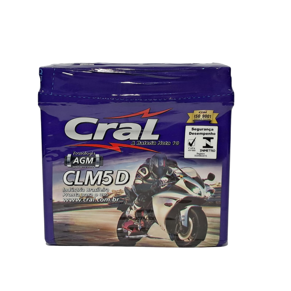 Bateria Moto Cral 6ah Titan 150 Cg 150 Mix Titan Fan Start 160/ Biz 100/ Biz 125 ks/ Crf 230/ Xre190 300/ Web 100/ Hunter 100/ Dafra nxr125 150 160