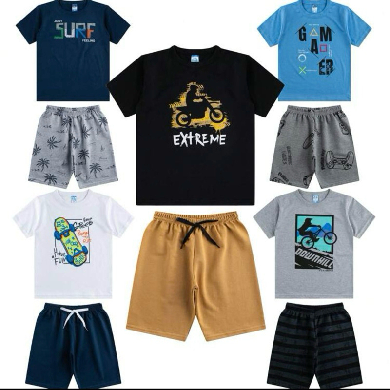 Kit 10 peças de roupas masculino infantil menino são 5 camisas e 5 bermudas camisa com estampa e shorts moletinho tamanh