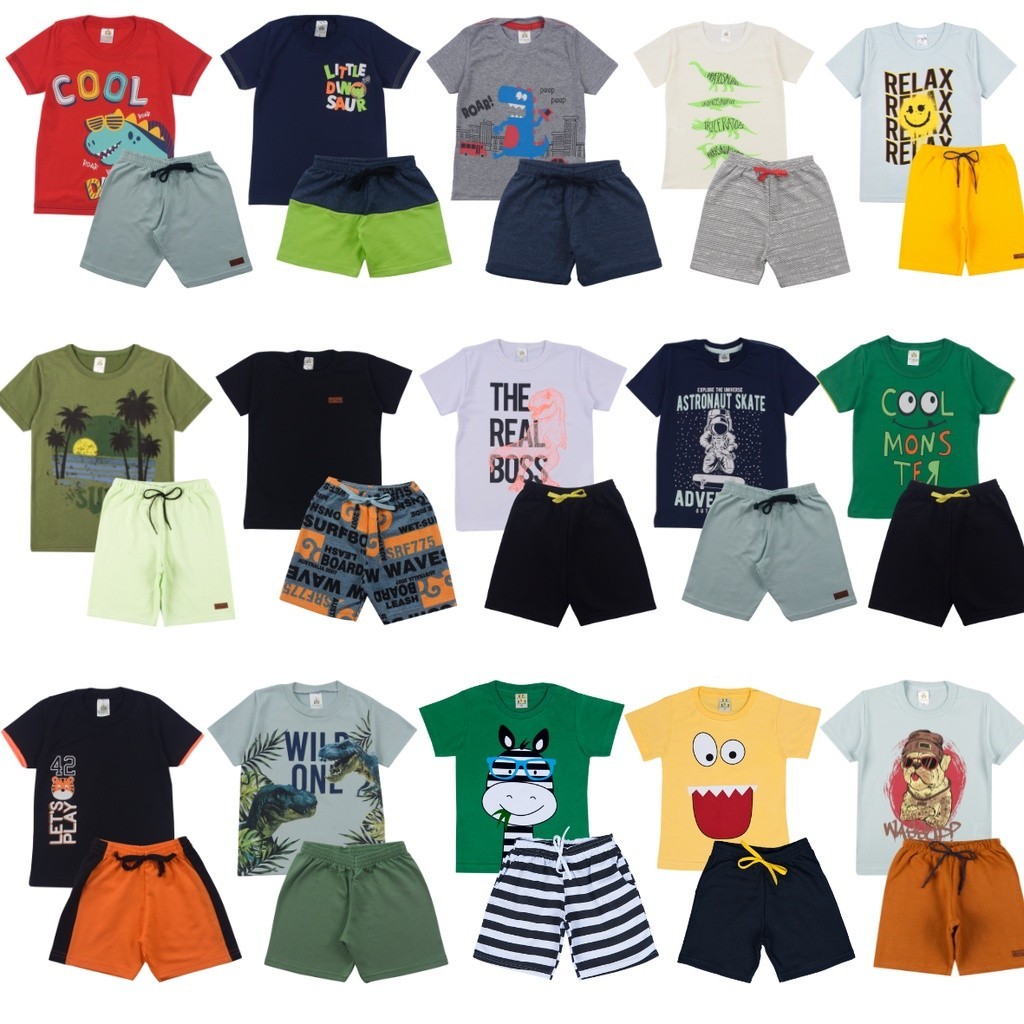 Kit Sortido 10 Peças de Roupas Infantil Menino- Masculino-5 Camisetas + 5 Bermudas - Promoção - Kit com 5 Conjuntos de Roupa Infantil Menino