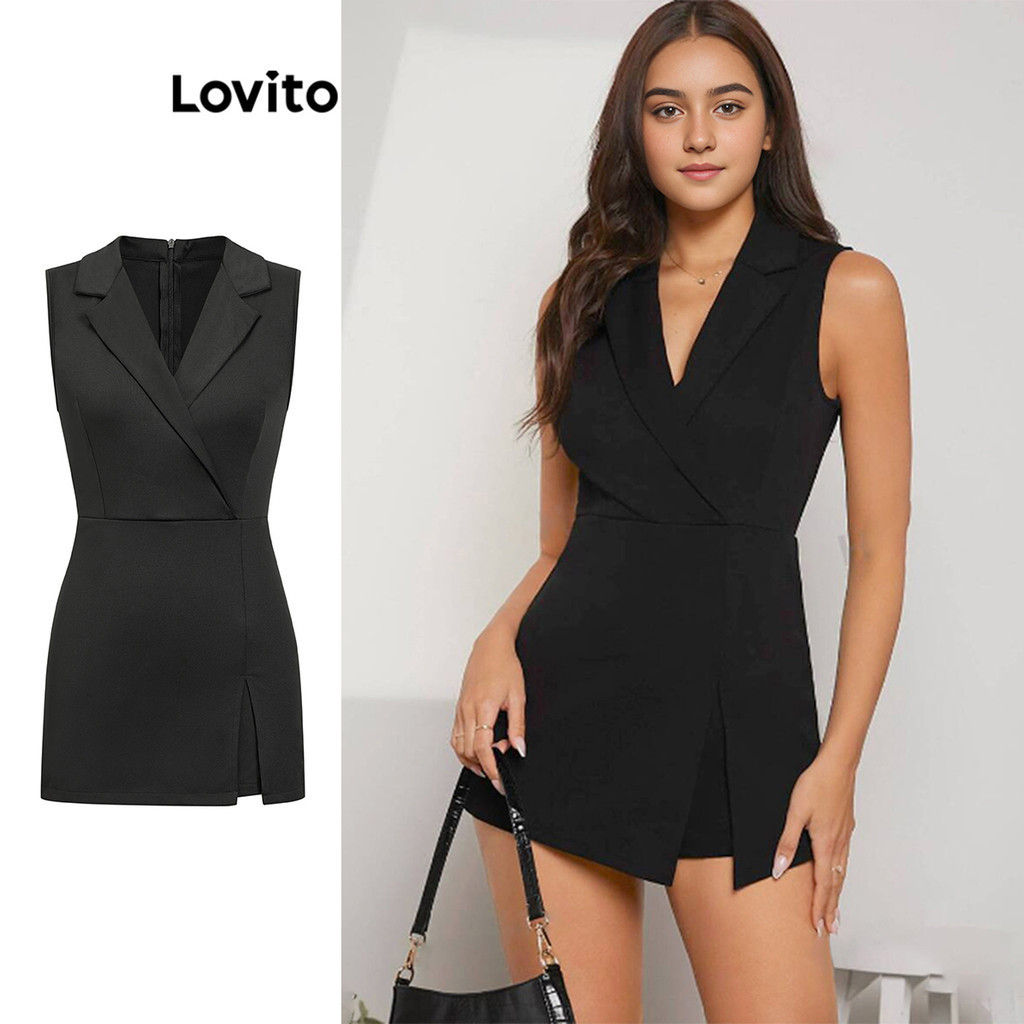 Lovito Macacão elegante simples dividido falso 2 em 1 para mulheres L89ED043