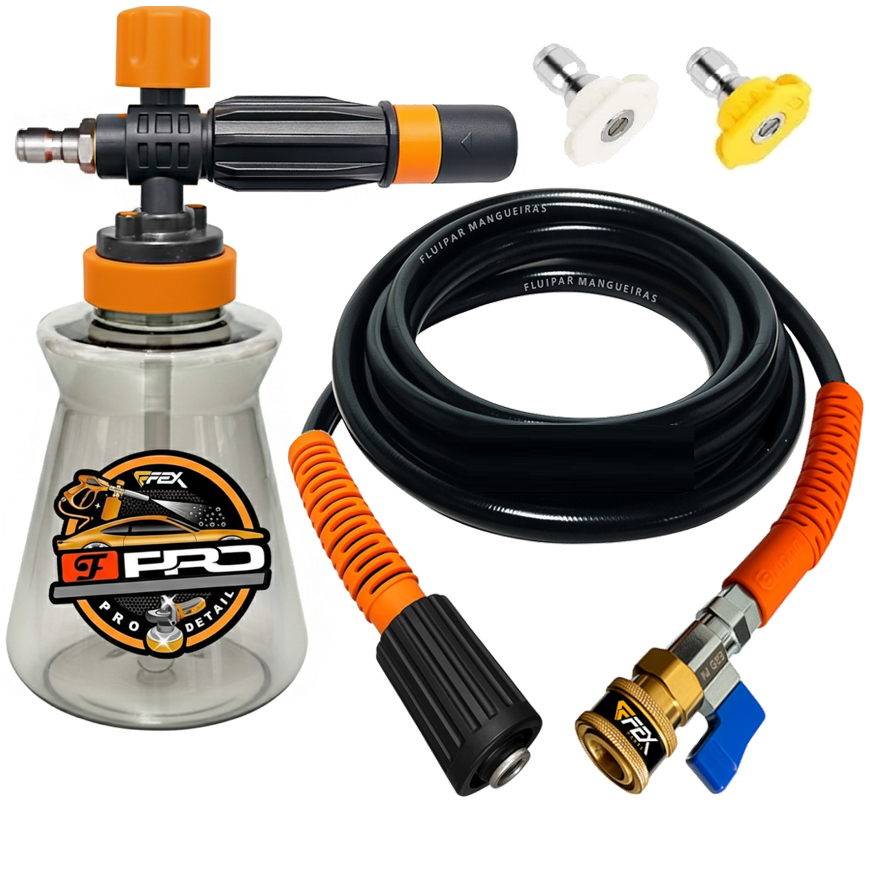 Kit Mangueira Nylon Bico Registro Engate Rápido com Snow Foam Lavadora Electrolux/Wap /Lavor/Tekna