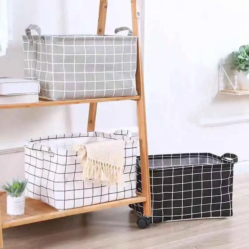 1 peça Cesta de armazenamento de mesa impressão xadrez Elegante e Prática