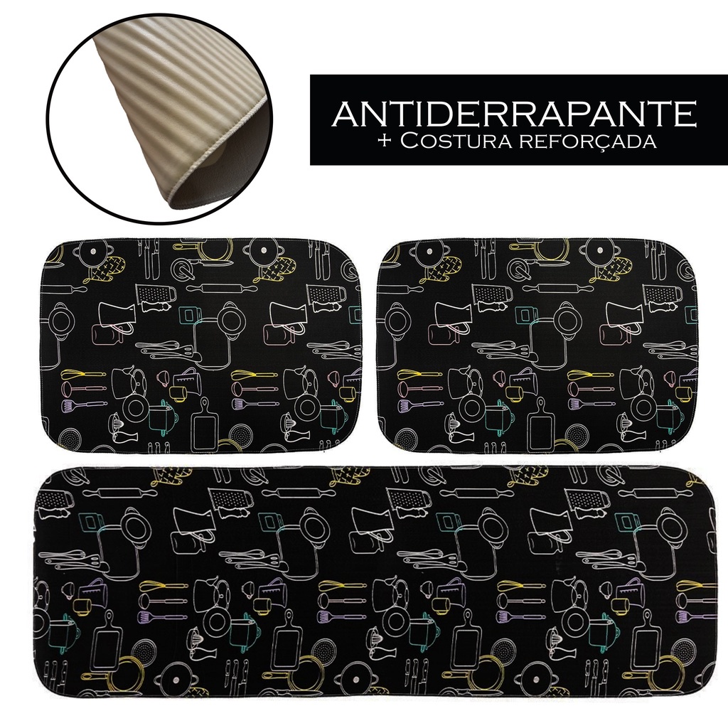 Kit 03 Jogos de Tapetes para Cozinha 3 Peças Antiderrapante Emborrachado Costura Reforçada Revenda