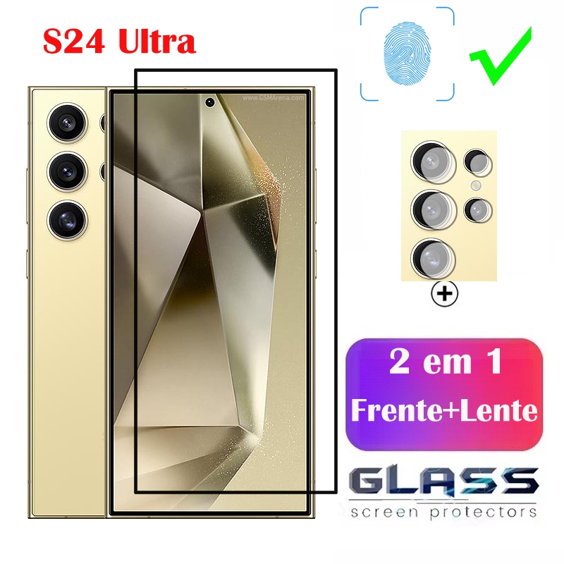 2 Em 1 Película De Vidro Para Samsung S24 Ultra 9D Vidro Temperado Tampa Inteira pegadas digitais Pelicula Samsung Galaxy S24 S23 FE A25 A15 A05 A05S 4G 5G Filme Protetor De Tela De Com De Lente De Câmera