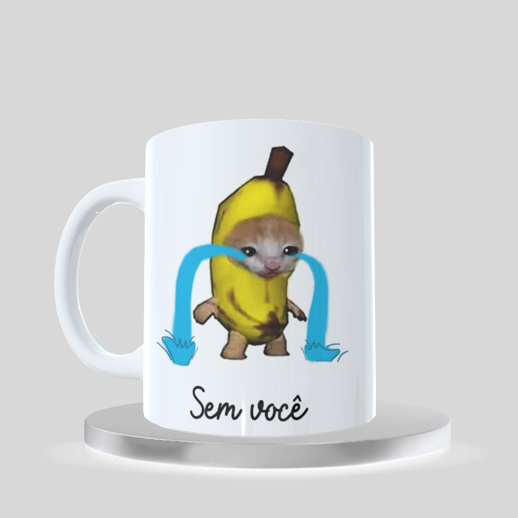 Caneca De Porcelana meme Banana Cat e Happy Cat, namorados