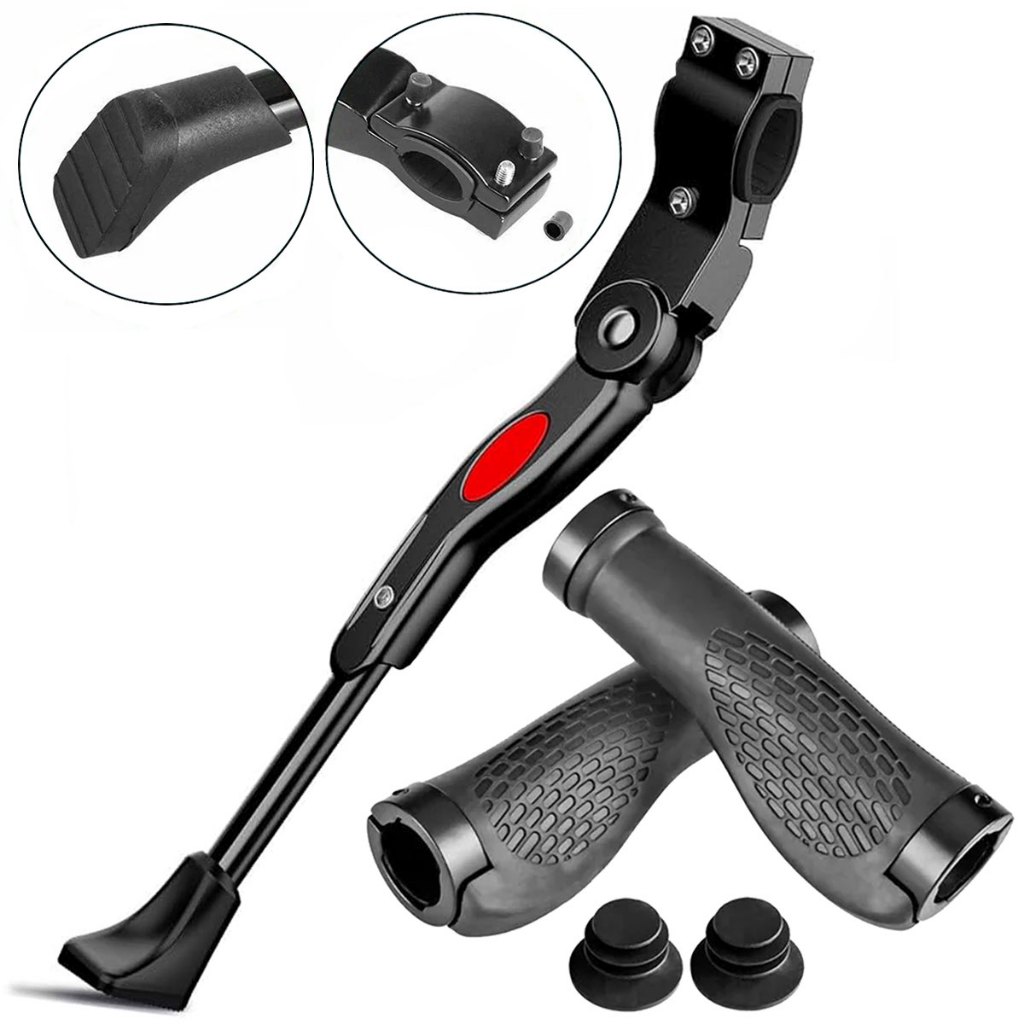 Pezinho Para Bike Descanso Lateral Com Regulagem 20 Até 29 + Par De Manopla Anatômica Gel Trava Bar End Bike Bibicleta