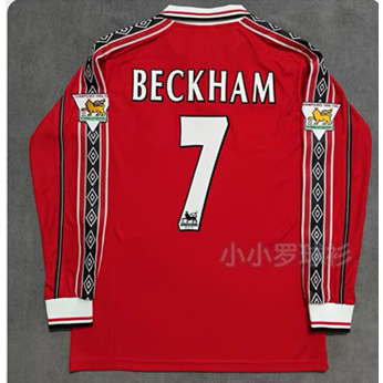 19998 Manchester United Chefe Da Manga Longa Beckham Camisa De Futebol Vintage Masculino