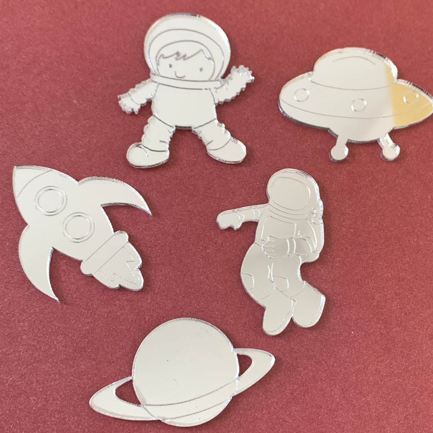 Aplique Espaço/Astronauta em Acrílico Prata 4 cm - Para lembrancinhas, laços e artesanatos em geral