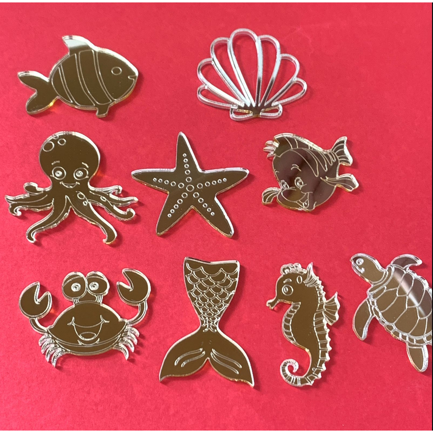 Aplique em Acrílico Espelhado Sortido Fundo do Mar - Pacote com 10 Unidades