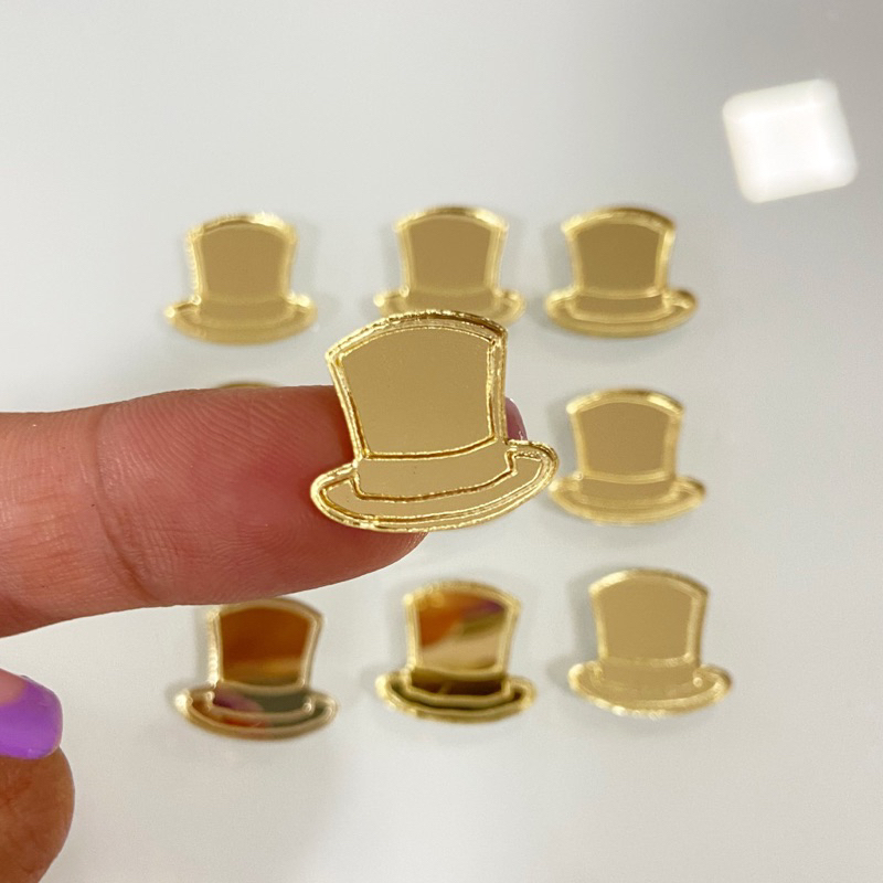 Aplique Acrílico espelhado 2 cm Cartola Circo Palhaço para Laço - pacote com 10 unidades