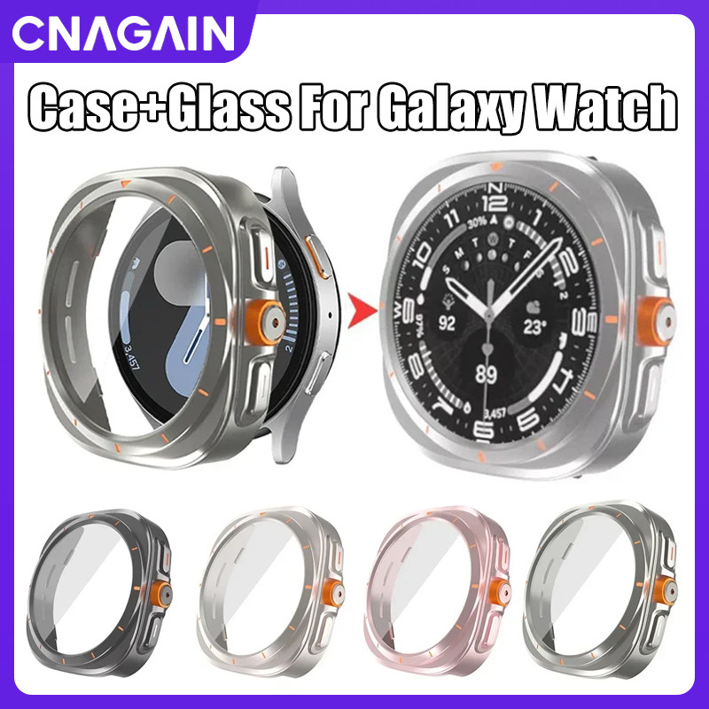 CNAGAIN Estrutura Da Caixa Dura Para PC + Filme De Vidro Temperado HD Compatível Samsung Galaxy watch 6 40MM 44MM , Segundos De Smartwatch Relógio Inteligente Ultra Capa Protetora anti-Queda De Uma Peça