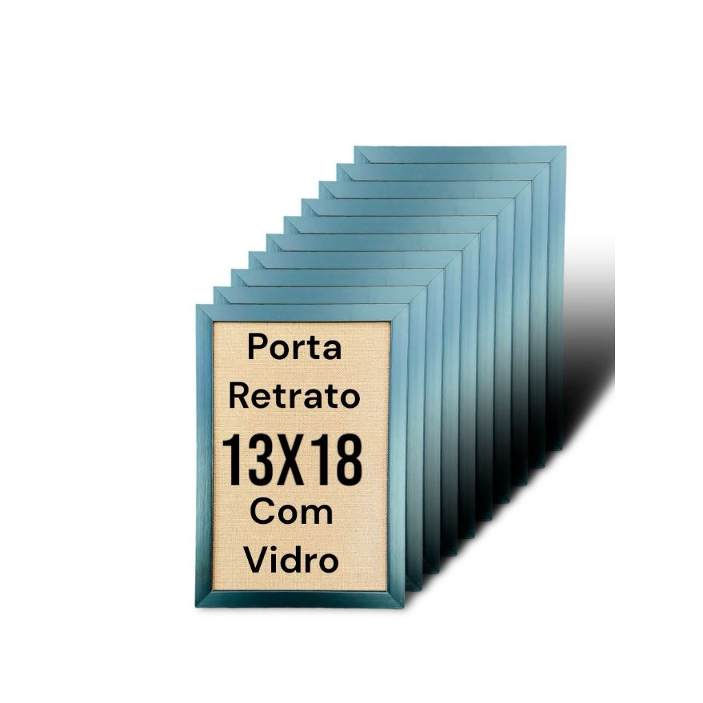 Kit 10 Porta Retratos 13x18 Moldura Preta Com Vidro