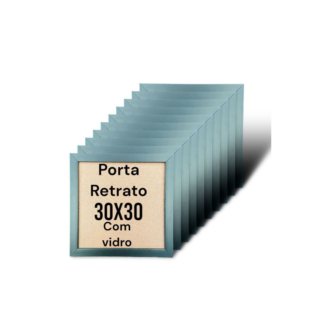 Kit 10 Porta Retratos 30x30 Moldura Preta Com Vidro