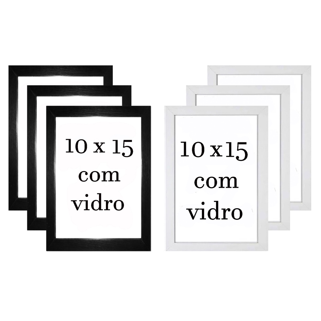 Kit 10 porta-retratos 10 x 15 com moldura e vidro para parede
