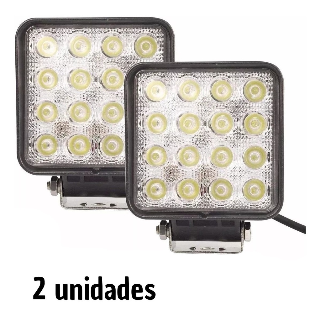 FAROL DE MILHA QUADRADO LED 48 WTS CARRO CAMINHÃO KIT COM 2 UNIDADES