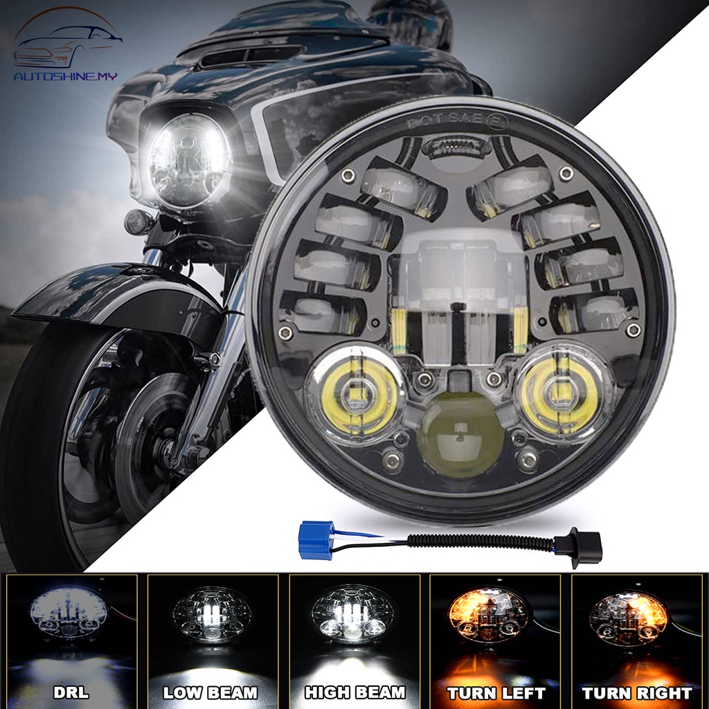 1pçs 5,75 " 5 3/4 Polegadas 200W Farol LED Cree Redondo Para Motocicleta Lâmpada De Feixe Baixo Alto Com Luz De Sinalização De Volta Âmbar E DRL Branco