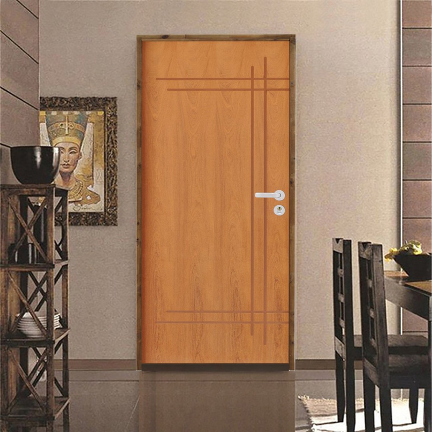 Kit Porta de Madeira 210x82cm Batente 11cm Fechadura Stilo Cromada Externa Belissima 6 Hale Esquadrias