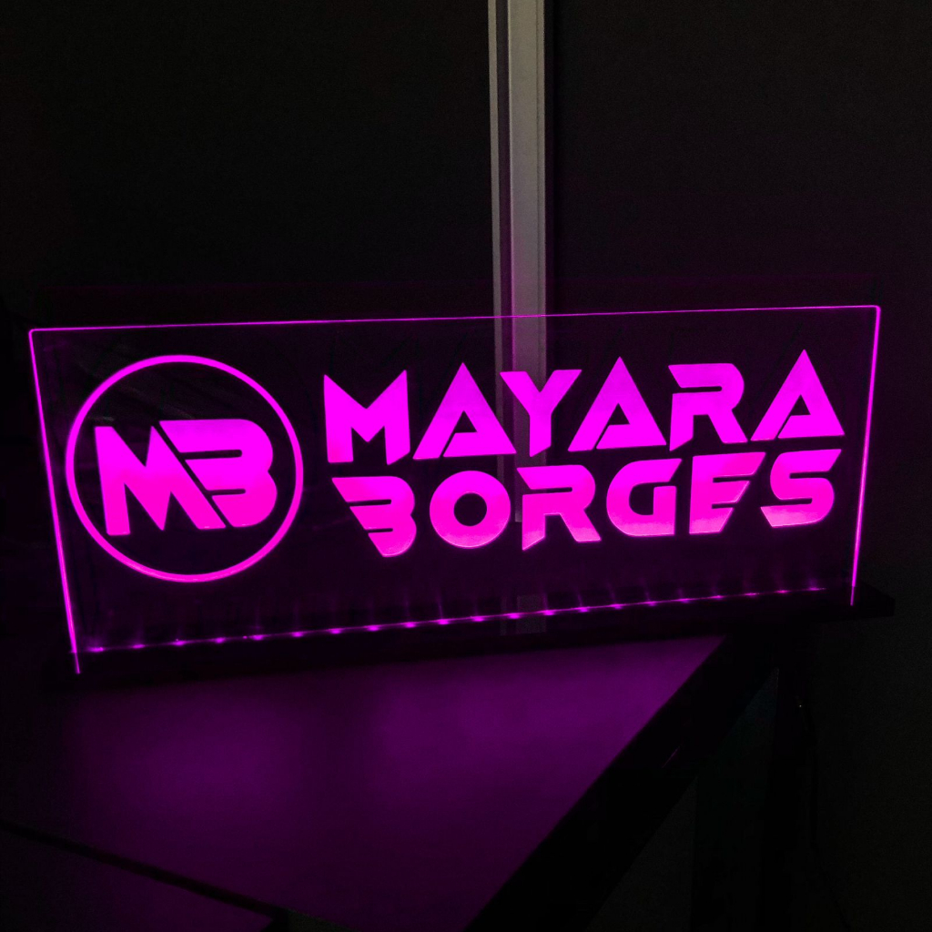 Display Acrílico Iluminado Led Personalizado Com Sua Logo 40 Cm Loja Decoração Dj Som Show