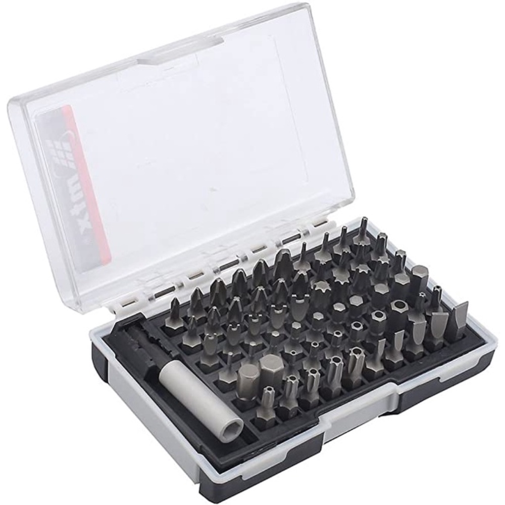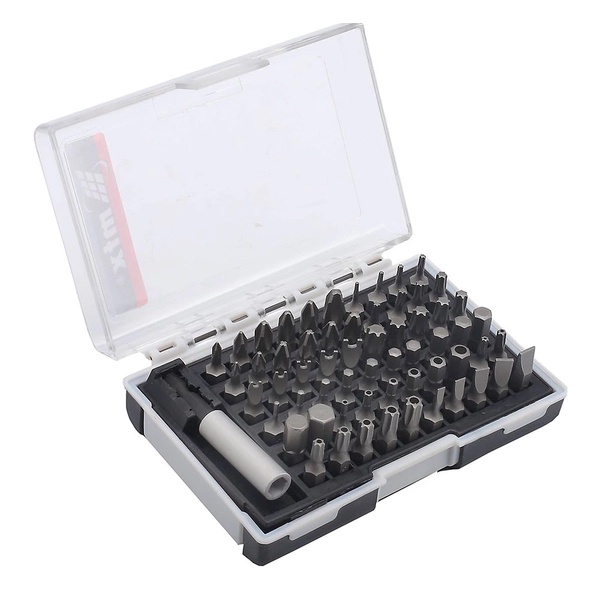 Jogo de bits com 61 peças com estojo plástico, cromo vanádio, para montagem e desmontagem de conexões de rosca, parafusos