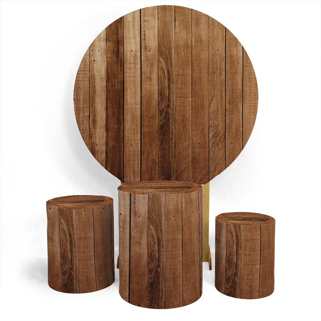 Kit de Festa Painel Redondo Madeira + Trio De Cilindros Capa Para Vestir Sublimado Aniversário