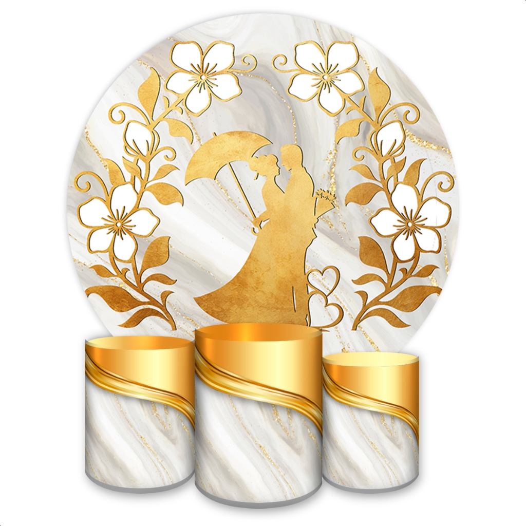 Kit Capa Painel Redondo + Trio Capas de Cilindros Sublimado Tema Casamento e Bodas