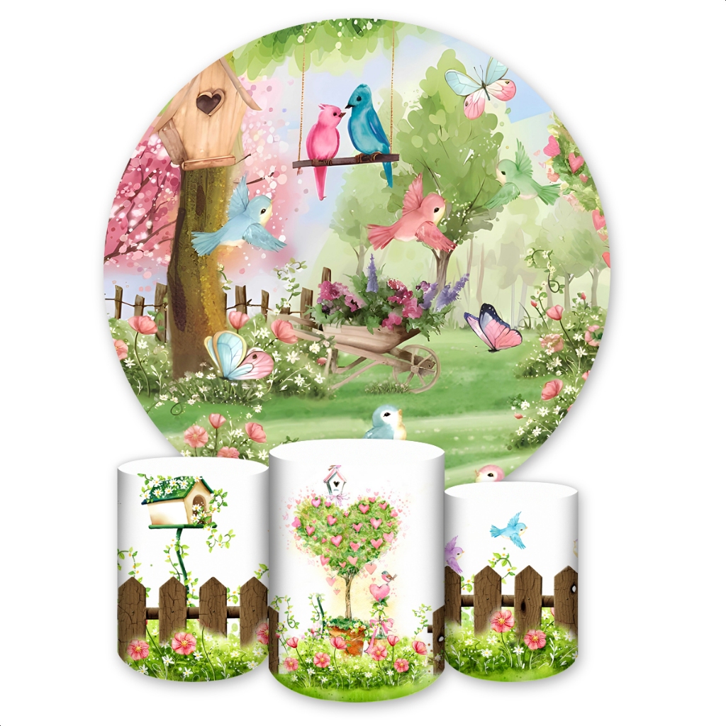 Kit Capa de Painel Redondo + Trio Capas de Cilindro Sublimados Tema Jardim