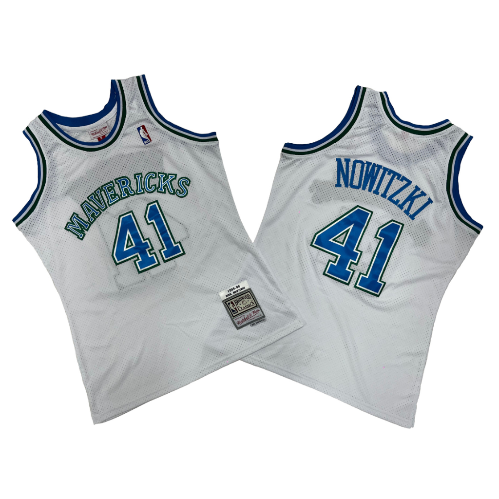 Nova Camisa De Basquetebol Masculina Dallas Mavericks 41 Dirk Nowitzki Bordada mn retro Branca Da NBA