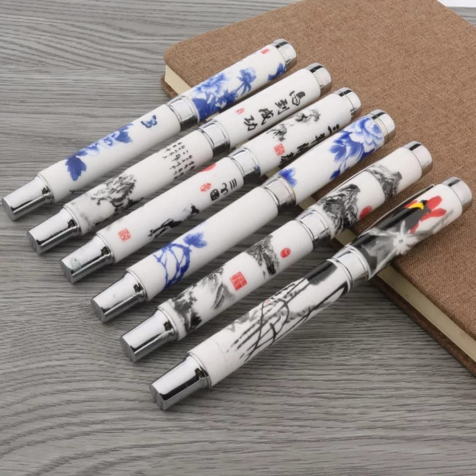 Belíssima Caneta Tinteiro em Cerâmica e Aço com conversor para Recarga Perfeita para Presente Estudo Papelaria