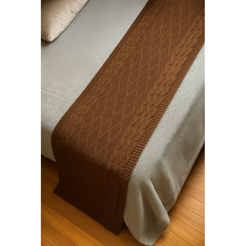 Peseira Manta Trança Sala Cama Queen Sofá Tricot 230x60cm