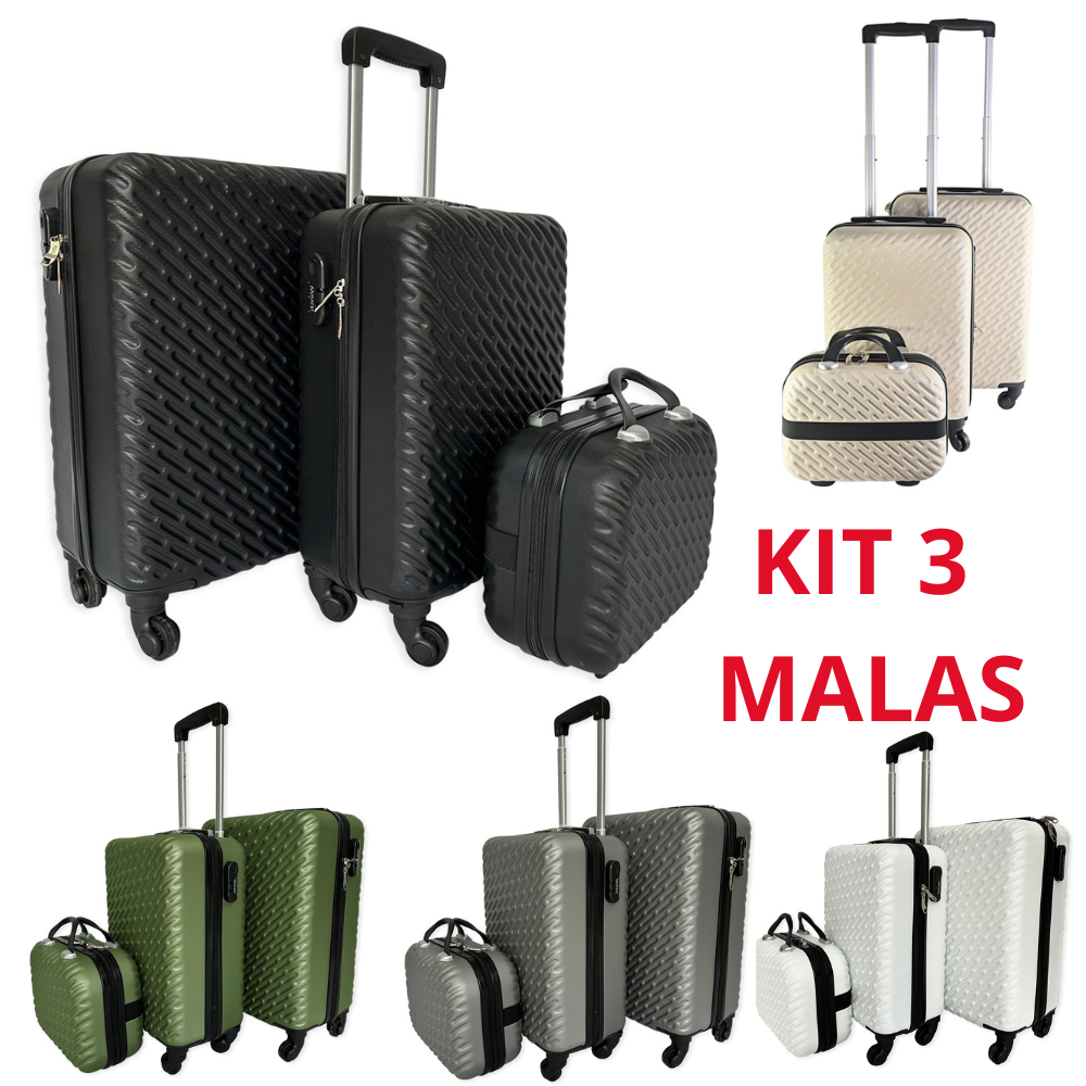 Conjunto Kit com 3 Malas de Viagem Jogo de Bordo em Plástico 23kg, 10kg e Frasqueira 14"
