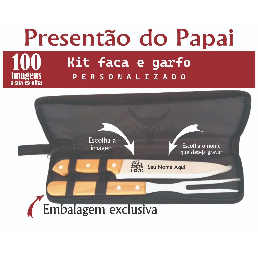 Estojo Churrasco Faca e Garfo com Bag Kit Personalizado Inox Presente Pai