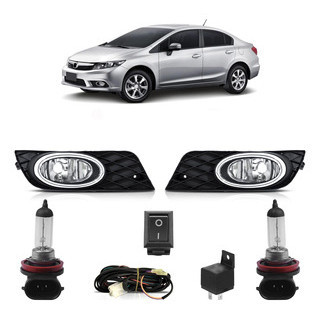 Kit Farol de Milha Auxiliar Completo + Par Lâmpada H8 Civic 2012 2013 2014