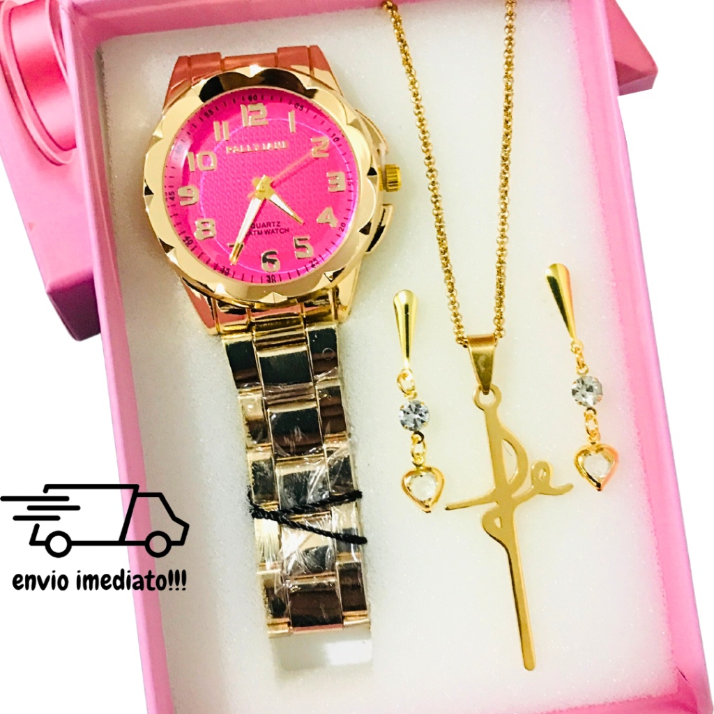 ⚡PROMOÇÃO⚡ Relógio Feminino + Kit Colar Brincos Folheados A Ouro 18k .