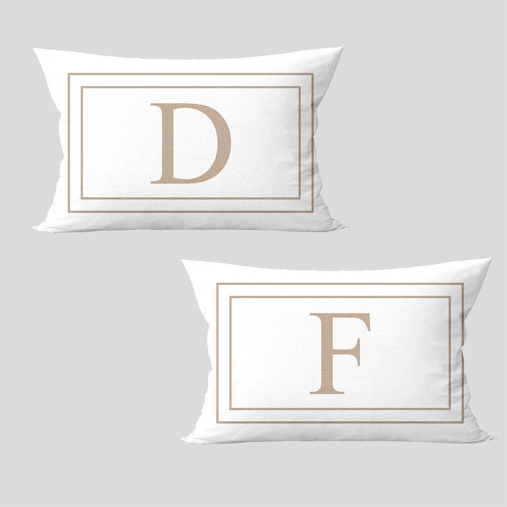 Kit 2 Capas Almofadas Estampa Inicial Letra Casal Decoração Bege Baguete 50x30