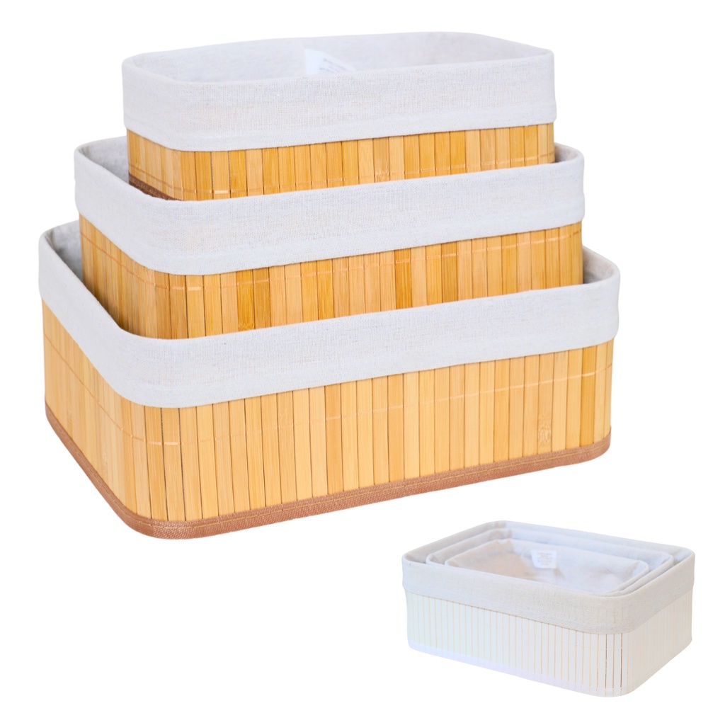 Kit 3 Cestos Organizadores de Bambu Multiuso com Forro