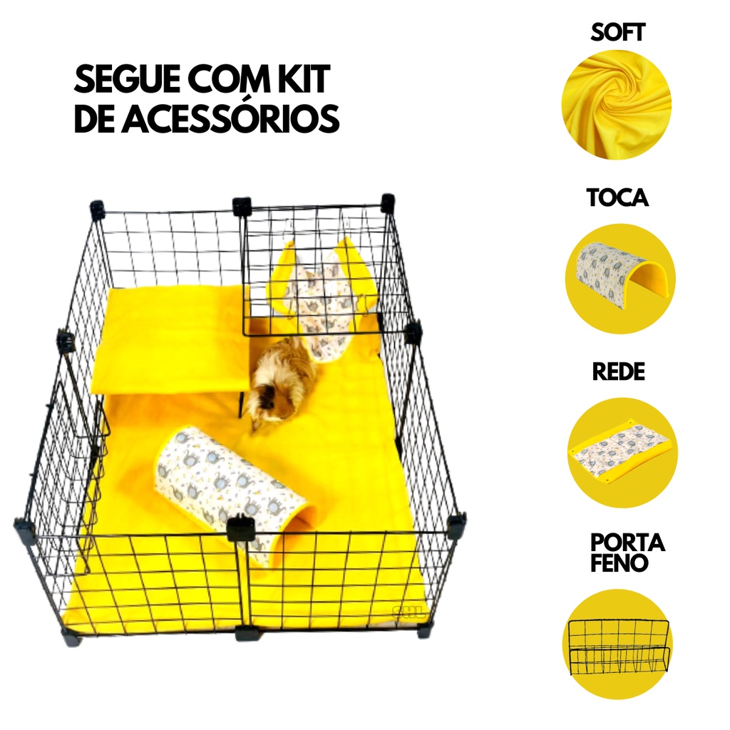 Cercado Para Porquinho Da Índia Enxoval com Almofada, Rede, Manta e Porta Feno