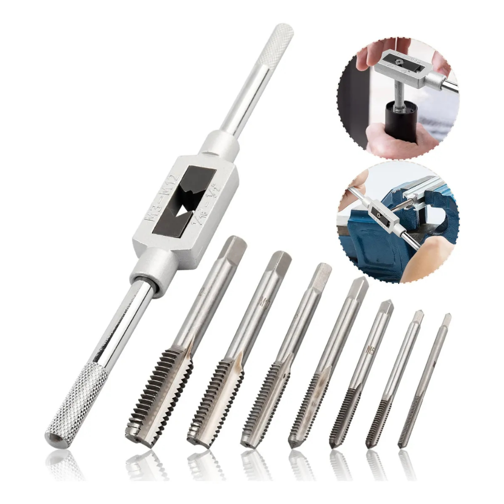 Jogo de Macho com Vira Macho 8 Peças M3 a M12 para abrir rosca