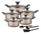 Jogo de Caçarolas 05 Peças com Tampa de Vidro e Utensílios