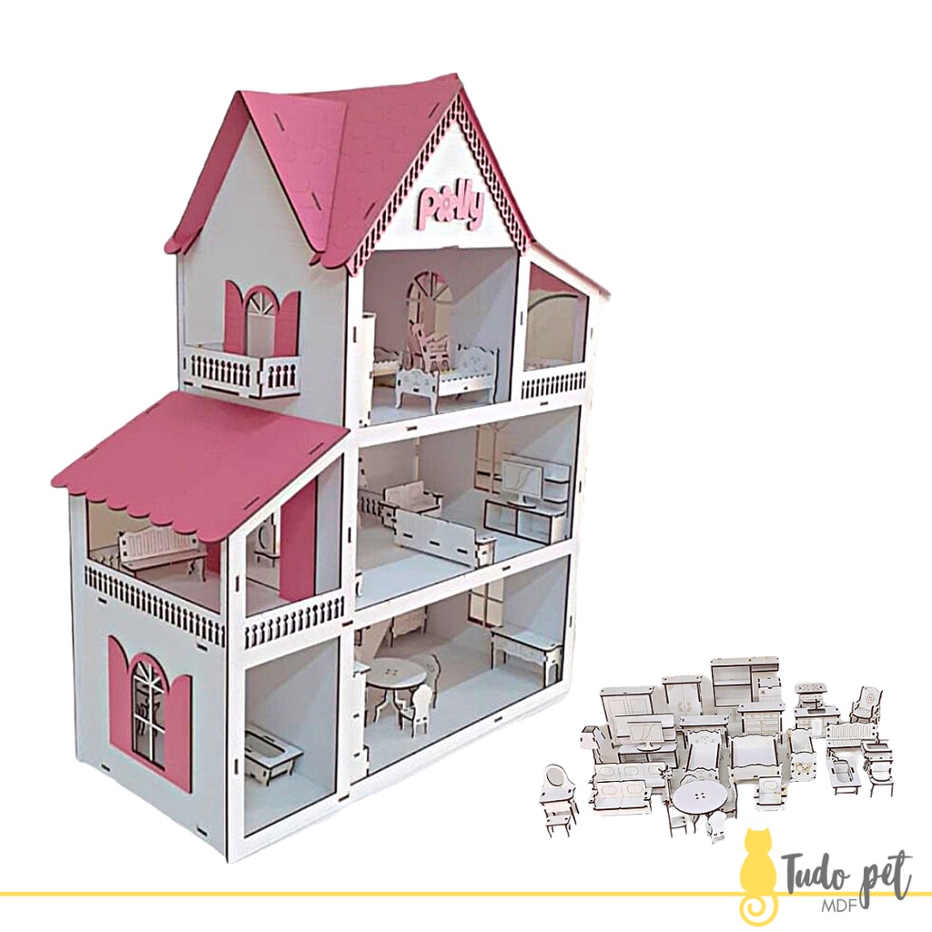 Casinha Para Boneca Criança Brinquedo Infantil Menina + Mini Móveis