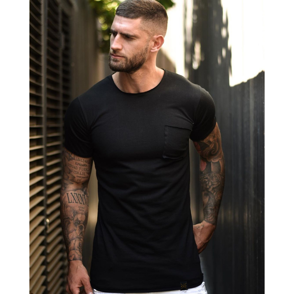 Camiseta Camisa Masculina manga curta Preta academia Básica Bolso Algodão Premium